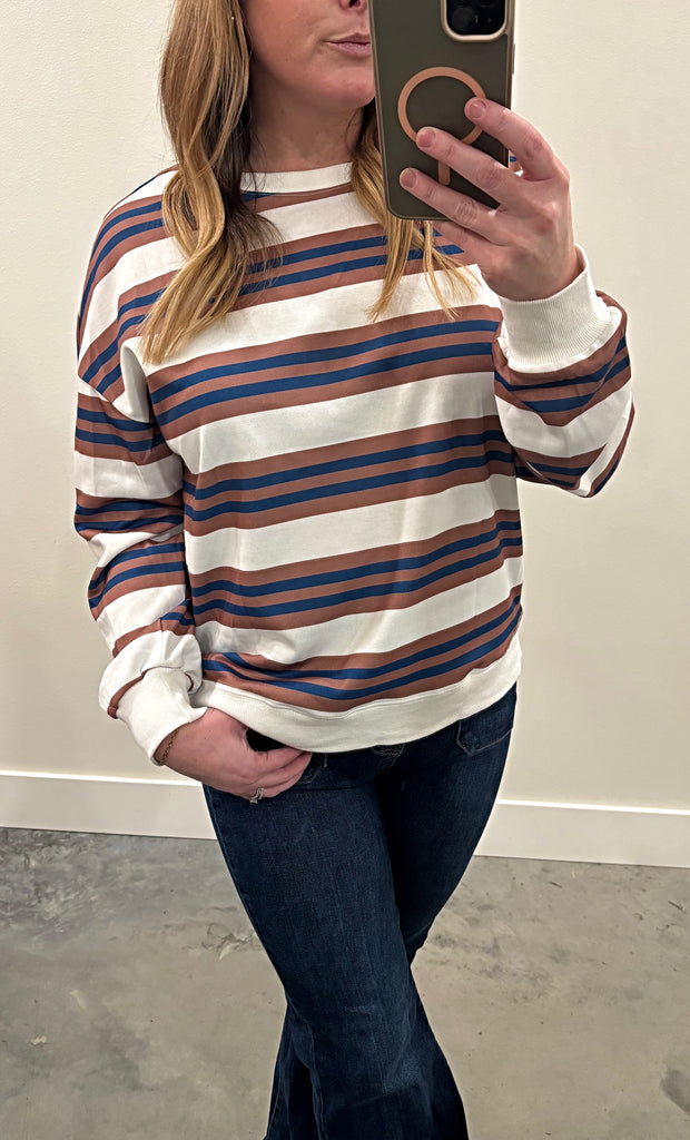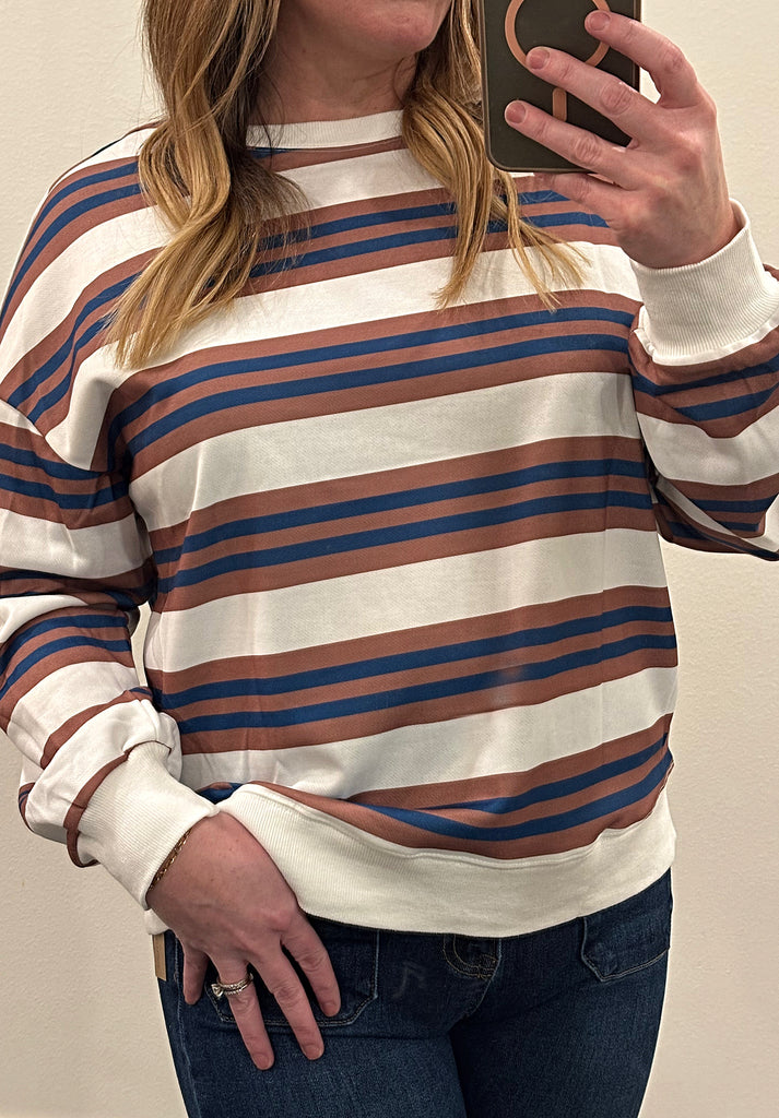 Lightweight crewneck design pullover! Level up your casual wear with beautifully designed Fall top. Comes with the perfect neutral color scheme. Modeling a size medium below. Model stats: 5’4 / 155lbs wearing a size medium. Material: 100% Poly.